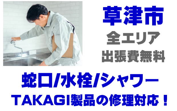 草津市で水栓メーカーTAKAGIの修理業者をお探しなら当社までお気軽にお問い合わせください。蛇口の水漏れ、シャワーの故障などタカギ製に関するトラブルなら何でもご相談ください。